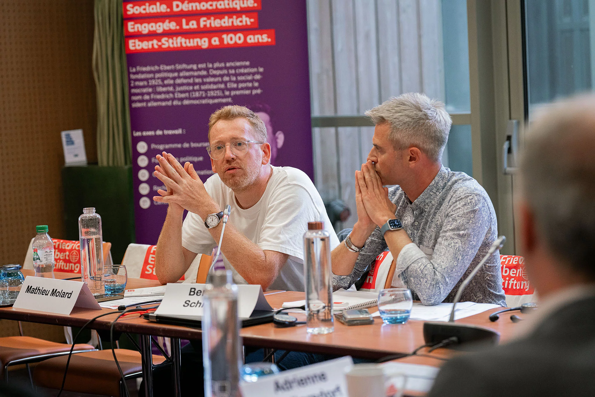 Pour relier le travail universitaire à la lutte contre l’extrême droite dans la société française, la FES a invité ses partenaires syndicaux de la CFDT, de la CGT et de l’UNSA. De plus en plus de syndicats, en France comme ailleurs, consacrent aujourd’hui des ressources à l’éducation politique et au combat contre l’extrême droite dans le monde du travail. Car c’est dans les entreprises que la réalité devient tangible : campagnes de haine contre les collègues issus de l’immigration, récits complotistes sur la prétendue discrimination des « natifs », diffusion de discours toxiques qui fracturent le quotidien du collectif de travail.