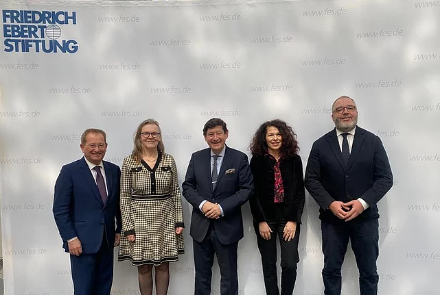 Echange franco-allemand sur l'Europe 03/26/2023 22:00 to 03/27/2023 22:00 - Berlin Terminexport im ICS-Format Une délégation du groupe socialiste français du Sénat au Bundestag à Berlin Les 27 et 28 mars, une délégation du groupe socialiste français au Sénat, conduite par le président du groupe Patrick Kanner, s'est rendue à Berlin pour échanger sur l'avenir de l'Europe avec des députés du groupe SPD au Bundestag allemand, avant les prochaines élections européennes. Ils ont rencontré à cette occasion, entre autres, le président du groupe parlementaire SPD, Rolf Mützenich, et le porte-parole du groupe en matière de politique étrangère, Nils Schmid. Cette rencontre a été coordonné par le bureau parisien de la Fondation Friedrich Ebert.