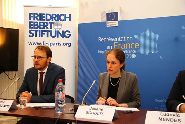 L'autre déficit démocratique: comment l'UE peut-elle protéger les droits fondamentaux dans ses Etats membres? 11/11/2018 23:00 to 01/01/1970 00:00 - Débat franco-allemand organisé en partenariat avec EuroCité Dans un certain nombre d’Etat membres européens, les droits fondamentaux de l’Union européenne ont été remis en question. Si ce problème a fait récemment l’objet d’une plus grande attention et provoqué une réaction plus déterminée des institutions de l’UE, les instruments actuels de défense des valeurs démocratiques se sont jusqu’à maintenant avérés insuffisants. En conséquence, la Fondation Friedrich-Ebert a mis en place un groupe d’experts reconnus issus du monde politique, de la société civile et de la recherche afin d’explorer les pistes donnant les moyens à l’UE de davantage protéger et promouvoir la démocratie dans ses Etats membres. Parmi les instruments susceptibles de renforcer la capacité d’influence de l’UE sur les Etats membres, les experts proposent de nouveaux systèmes de contrôle, la conditionnalité des aides européennes, la voie juridique via la Cour de justice de l’Union européenne, le soutien de la société civile notamment au travers d’un nouveau fonds pour les ONG, des mesures en faveur du pluralisme des médias et, enfin, des recommandations aux grandes familles politiques européennes. Ces propositions, qui ont fait l’objet d’une note publiée récemment par la FES, seront présentées et soumises à la discussion dans le cadre de cette table ronde. Accueil Stefan Dehnert, directeur du bureau parisien de la Fondation Friedrich-Ebert Protection de la démocratie dans les Etats membres de l‘UE : quels instruments pour l’UE ? Michael Meyer-Resende, directeur général, Democracy Reporting International Ludovic Mendes, député de Moselle, membre de la commission des affaires étrangères Nicolas Leron, président fondateur d’EuroCité Débat / Q&A Animé par : Juliane Schulte, FES Berlin