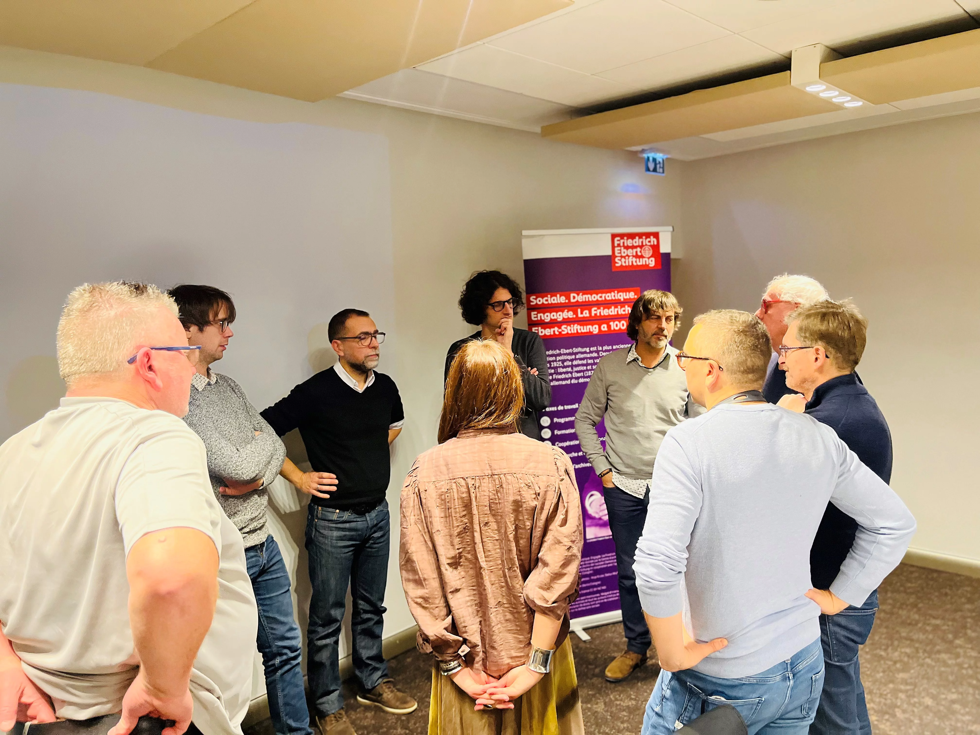 Event Allemagne et France Avenir de la démocratie Réseau pour la démocratie 15.12.2025 Quand les syndicats français et allemands font front commun contre l’extrême droite. Image: Creator: FES Paris Groupe de travail franco-allemand syndical, Credits : FES Paris Image: Creator: FES Paris Les partis d’extrême droite se montrent traditionnellement peu enclins à reconnaître et à respecter le rôle des syndicats. Au contraire, tant le Rassemblement national (RN) français que l’Alternative für Deutschland (AfD) allemande s’en prennent ouvertement aux organisations syndicales dans leurs programmes. Une fois au pouvoir, ils entendent en affaiblir rigoureusement l’influence, voire vider de leur substance leur rôle dans l’économie et dans la société. En tant qu’adversaires idéologiques de l’extrême droite, les syndicats incarnent ainsi un contre-pouvoir essentiel, dès lors qu’ils s’opposent résolument à une vision du monde nationaliste et corporatiste. Pour eux, la lutte contre l’extrême droite est donc indissociable de la défense des fondements pluralistes de la démocratie elle-même. Afin d’unir leurs forces, d’échanger leurs expériences et de développer des contre-stratégies communes, le bureau parisien de la FES a ainsi créé dès 2024 un groupe de travail franco-allemand réunissant les confédérations syndicales. Au cours de trois réunions bilatérales, dont la dernière s’est tenue ici à Metz, la Confédération allemande des syndicats (DGB) et les confédérations françaises CFDT, CGT et UNSA ont déjà posé les bases d’un réseau solidaire dédié à la protection de la démocratie. Conformément à la Charte des valeurs de la Confédération européenne des syndicats (CES), l’objectif est désormais de partager les expériences issues d’initiatives locales, d’analyser les stratégies et les objectifs des acteurs d’extrême droite et de développer des mesures préventives. La coopération et la solidarité entre ces organisations doivent être le vecteur d’un renforcement de la capacité d’action et la protection des syndicats. Ce projet a reçu un soutien enthousiaste de la part des plus hautes instances. Face à une extrême droite « au seuil du pouvoir », Marylise Léon et Sophie Binet, secrétaires générales de la CFDT et de la CGT, ont assuré lors du lancement de 2024 que les syndicats « restent un rempart ». Et « nous continuerons à résister ». Yasmin Fahimi, présidente de la DGB, a réaffirmé : « Nous en sommes convaincus : il est encore possible de renverser la tendance. » Malgré les tensions et les obstacles qui traversent parfois les relations franco-allemandes, une coopération apparaît aujourd’hui urgente et nécessaire. Le quotidien de nombreux syndicalistes en France et en Allemagne est souvent marqué par un climat de plus en plus tendu. Beaucoup hésitent désormais à aborder avec leurs collègues des sujets tels que le racisme, les discriminations ou les valeurs démocratiques, tant la diffusion des idées d’extrême droite pèse sur les échanges. Dans un premier temps, le réseau franco-allemand souhaite donc travailler à l’échange d’outils concrets : formation des membres des comités d’entreprise, diffusion d’argumentaires dans les entreprises, attitude à adopter face à des élus d’extrême droite au niveau local et stratégies à mettre en œuvre en cas de participation de l’extrême droite au gouvernement. Bien sûr, tous les débuts sont difficiles, en particulier lorsqu’il s’agit de coopération transfrontalière. S’y atteler concrètement agit, comme toujours en franco-allemand, comme un révélateur immédiat des différences culturelles et institutionnelles entre les partenaires. Qu’il s’agisse des structures de responsabilité des organisations, de leurs processus décisionnels ou de leurs formes d’action, tout fonctionne différemment chez le voisin. Cela se ressent également dans la perception de la menace : l’urgence est manifestement plus forte du côté français. Les prochaines élections présidentielles auront lieu en mai 2027, et un succès du RN n’est pas à exclure. En Allemagne aussi, l’AfD fait une entrée de plus en plus remarquée dans les parlements et les communes. Les élections des comités d’entreprise de 2026 constitueront également un test stratégique particulièrement important pour la DGB. L’atelier de Metz a donc fixé l’objectif concret d’une plateforme permanente d’échange d’expériences, d’expertise et d’idées concrètes. Il est vital de renforcer la solidarité européenne syndicale et de donner aux acteurs du monde du travail les moyens d’agir pour défendre leur liberté et celle de l’ensemble de la société. Prise de position commune des syndicats allemands et français Charte des valeurs de la CES, mai 2023