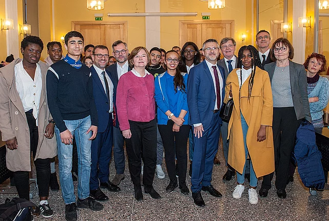 Visite des ministres aux Affaires européennes français et allemand à Clichy-sous-Bois 11/22/2018 23:00 to 01/01/1970 00:00 - Quelles peuvent être les attentes de jeunes habitants d’une ville de la banlieue parisienne vis-à-vis de l’Union européenne? C’est pour répondre à cette question que Michael Roth, ministre adjoint aux Affaires européennes et son homologue française Nathalie Loiseau se sont entretenus avec un groupe de jeunes dans le cadre d’une rencontre à Clichy-sous-Bois consacrée à l’Europe. Les élèves du lycée Alfred Nobel de Clichy-sous-Bois ainsi que des jeunes invités par l’association Arrimages, qui étaient présents lors de ces échanges, ont ainsi mis l’accent sur la question de leurs perspectives professionnelles et la capacité de l’Europe à les soutenir dans ce domaine. Cette rencontre était précédée d’un entretien des deux ministres avec le maire Olivier Klein sur la situation de la ville.